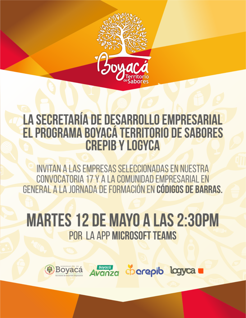 La Secretaría de Desarrollo Empresarial de la Gobernación de Boyacá y el CREPIB le invitan este martes 12 de mayo desde las 2:30pm a la jornada de formación en Códigos de Barras.